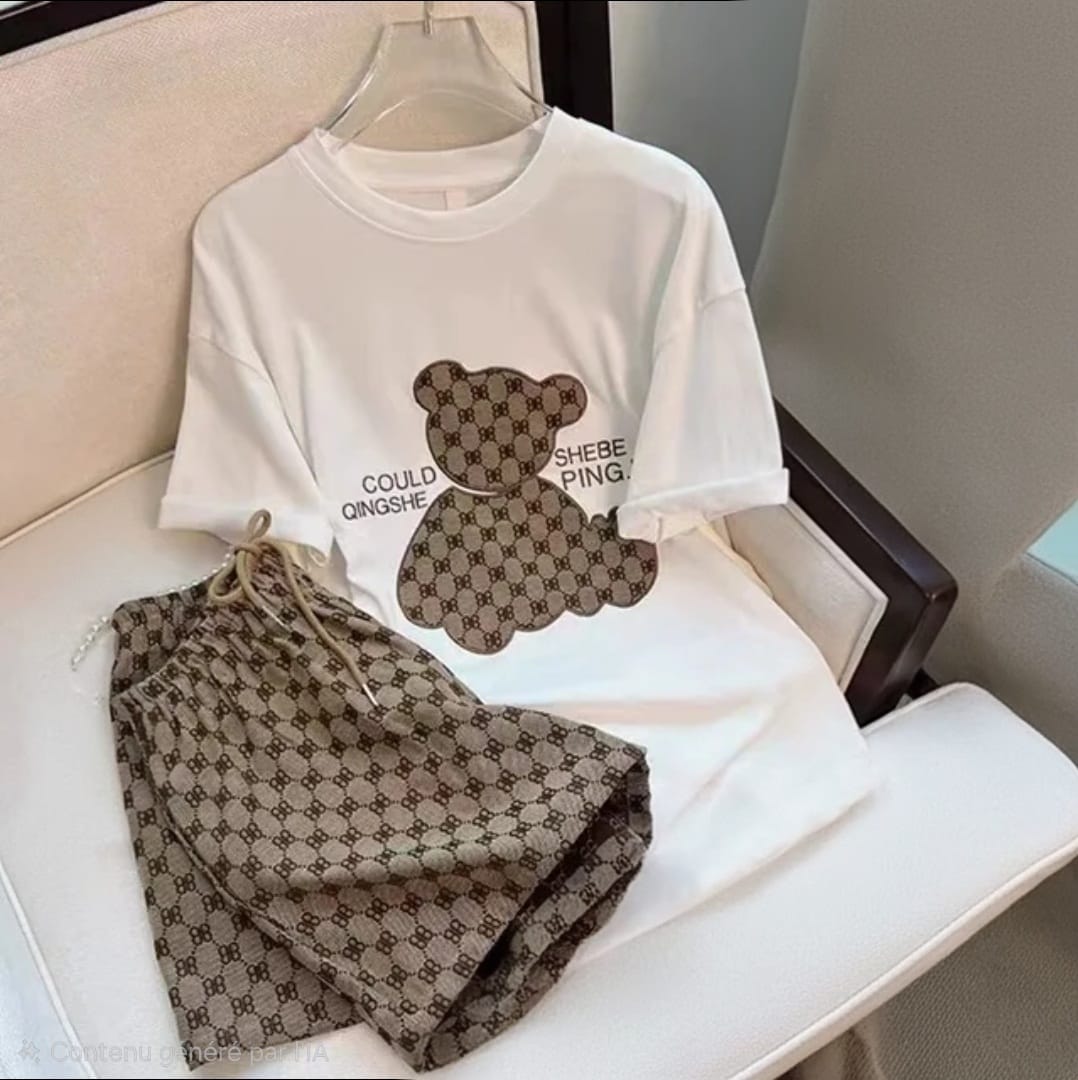 Ensemble féminin incontournable alliant confort et élégance. Le t-shirt épousé met en valeur votre silhouette tandis que le short taille haute affine la ligne. Parfait pour les journées décontractées ou les moment chics à la maison , ce duo se décline en coloris intemporels. Matières douces et respirantes pour une sensation agréable toute la journée. À porter seul ou en total look pour un style moderne et sophistiqué.